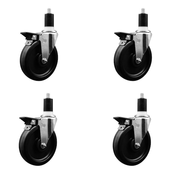 5'' Phenolic Swivel 1-1/2'' Expanding Stem Caster Set with Brake, 4PK