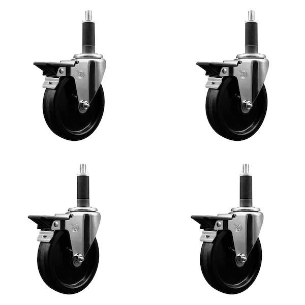 5'' Phenolic Swivel 1'' Expanding Stem Caster Set with Brake, 4PK