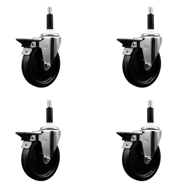 5'' Phenolic Swivel 7/8'' Expanding Stem Caster Set with Brake, 4PK