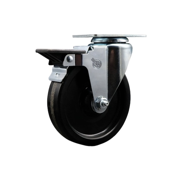 Listing is for one 1 Service Caster Series #20 swivel caster with a 5'' diameter by 1-1/4'' wide phenolic wheel and a posi locking brake capable of supporting 300 lbs./caster. When searching for a reliable and durable solution to your caster needs, consider Service Caster's Series 20 phenolic casters. The Service Caster Series #20 is ideal for light and medium duty material handling, carts, equipment, and shop projects. The phenolic wheels have a high resistance to impact damage while providing protection for floors in commercial and industrial settings. Phenolic wheels not only provide higher load capacities and impact resistance than comparable wheels, but are also resistant to most chemicals and oils. Mounting options include top plate, bolt hole and standard and metric threaded stem sizes. All rolling on a finely crafted ball bearing design and zinc plated finish that provides durability under any condition and keeps you safely moving forward. Service Caster is unsurpassed in quality, reliability, and excellent customer service. Count on us to move you forward.