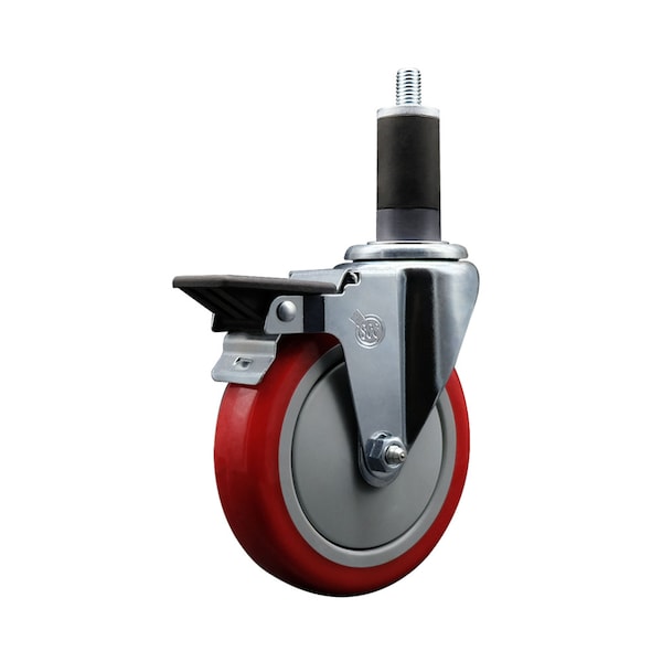 5'' Red Poly Swivel 1-1/4'' Expanding Stem Caster with Brake