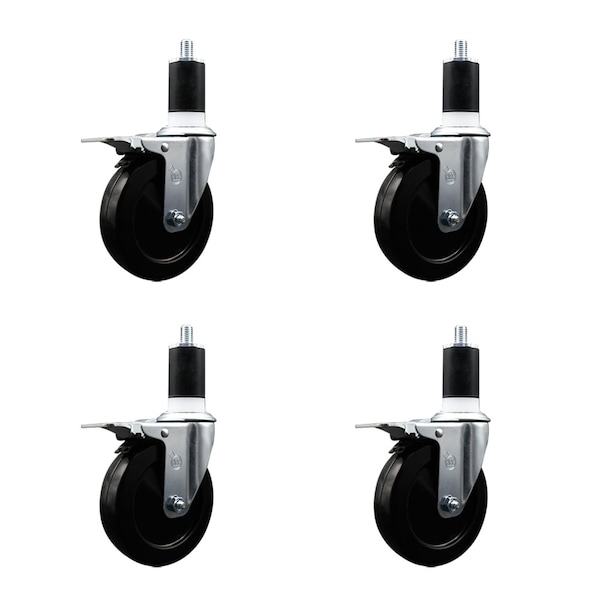 5'' Soft Rubber Swivel 1-1/2'' Expanding Stem Caster Set Total Lock Brake, 4PK