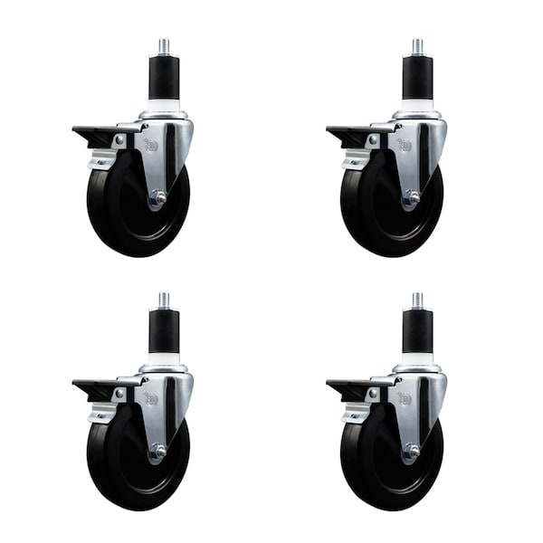 5'' Soft Rubber Swivel 1-1/2'' Expanding Stem Caster Set with Brake, 4PK