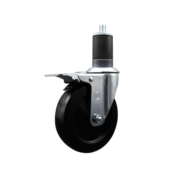 Listing is for one 1 Service Caster Series #20 1-5/8'' expanding stem swivel caster with a 5'' diameter by 1-1/4'' wide black soft rubber wheel and a total locking brake capable of supporting 275 lbs./caster. When searching for a reliable and durable solution to your caster needs, look no further than the Service Caster Series 20 expanding stem soft rubber wheel casters. The Series #20 features an innovative expanding stem that can easily adapt to the inside diameter of the opening, allowing for a secure fit in round or square tubes. Simply tighten the topmost knurled nut to compress the rubber for a snug fit. For added security, further compress the rubber with a wrench via the nut under the swivel raceway. Finely crafted with a bright zinc plated finish, heat-treated ball bearing raceway, and a soft rubber wheel, this versatile caster is ideal for work tables, shop projects, or any equipment with round or square tube legs. Service Caster is unsurpassed in quality, reliability, and excellent customer service. Count on us to move you forward.