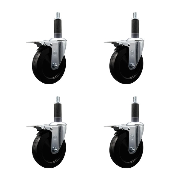 5'' Soft Rubber Swivel 1'' Expanding Stem Caster Set Total Lock Brake, 4PK