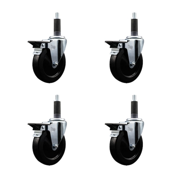 5'' Soft Rubber Swivel 1'' Expanding Stem Caster Set with Brake, 4PK