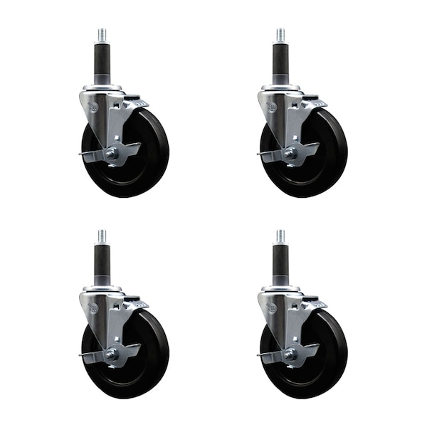 5'' Soft Rubber Swivel 1'' Expanding Stem Caster Set with Brake, 4PK