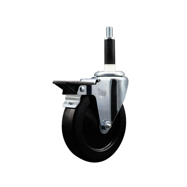 Listing is for one 1 Service Caster Series #20 7/8'' expanding stem swivel caster with a 5'' diameter by 1-1/4'' wide black soft rubber wheel and a posi locking brake capable of supporting 275 lbs./caster. When searching for a reliable and durable solution to your caster needs, look no further than the Service Caster Series 20 expanding stem soft rubber wheel casters. The Series #20 features an innovative expanding stem that can easily adapt to the inside diameter of the opening, allowing for a secure fit in round or square tubes. Simply tighten the topmost knurled nut to compress the rubber for a snug fit. For added security, further compress the rubber with a wrench via the nut under the swivel raceway. Finely crafted with a bright zinc plated finish, heat-treated ball bearing raceway, and a soft rubber wheel, this versatile caster is ideal for work tables, shop projects, or any equipment with round or square tube legs. Service Caster is unsurpassed in quality, reliability, and excellent customer service. Count on us to move you forward.