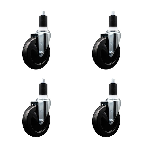 5'' Soft Rubber Wheel Swivel 1-1/2'' Expanding Stem Caster Set, 4PK