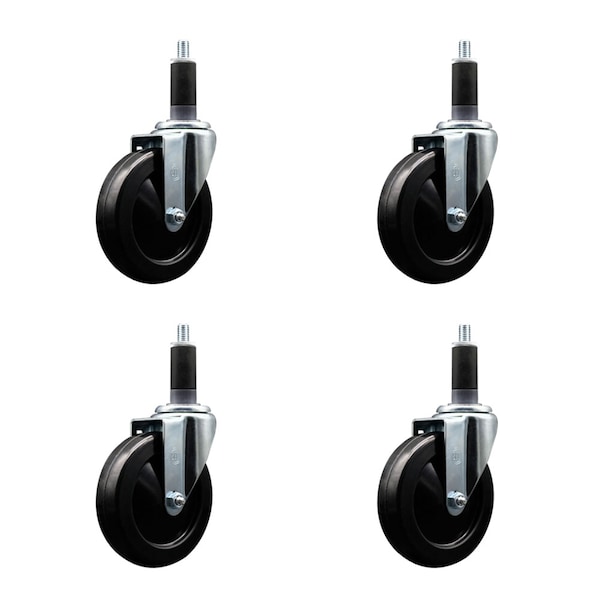 5'' Soft Rubber Wheel Swivel 1-1/8'' Expanding Stem Caster Set, 4PK
