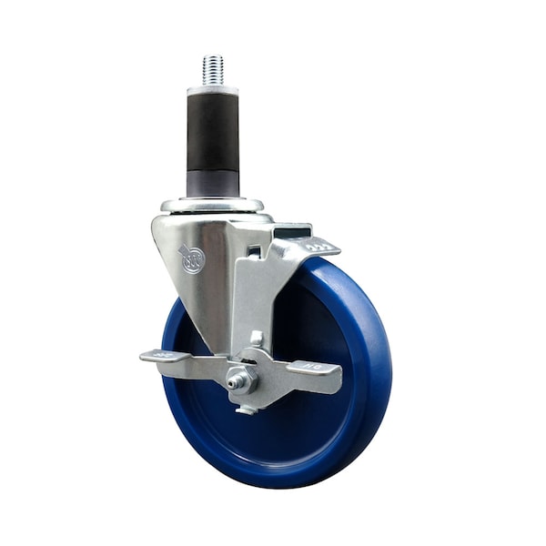 5'' Solid Poly Swivel 1-1/4'' Expanding Stem Caster with Brake
