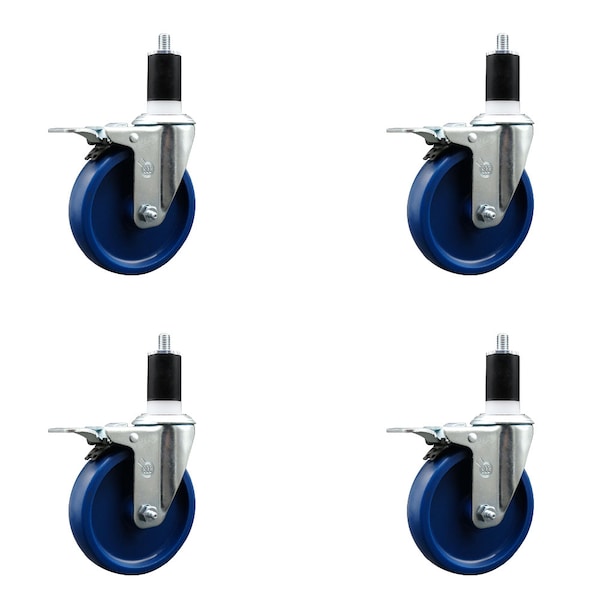 5'' SS Solid Poly Swivel 1-1/2'' Expanding Stem Caster Set Total Lock Brake, 4PK