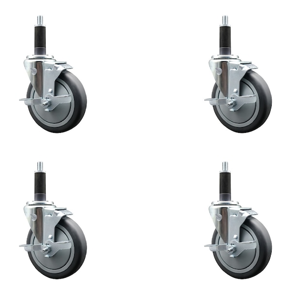 5'' Thermoplastic Rubber Swivel 1'' Expanding Stem Caster Set with Brake, 4PK
