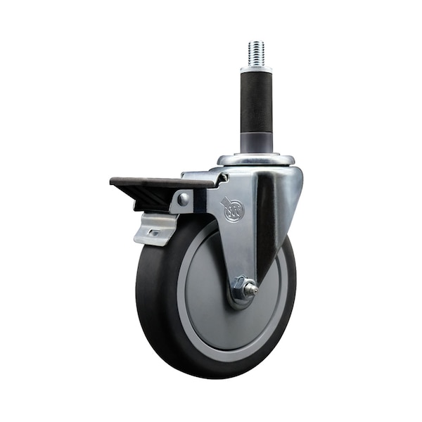 Listing is for one 1 Service Caster Series #20 1'' expanding stem swivel caster with a 5'' diameter by 1-1/4'' wide thermoplastic rubber wheel and a posi locking brake capable of supporting 300 lbs./caster. When searching for a reliable and durable solution to your caster needs, look no further than the Service Caster Series 20 expanding stem thermoplastic rubber wheel casters. The Series #20 features an innovative expanding stem that can easily adapt to the inside diameter of the opening, allowing for a secure fit in round or square tubes. Simply tighten the topmost knurled nut to compress the rubber for a snug fit. For added security, further compress the rubber with a wrench via the nut under the swivel raceway. Finely crafted with a bright zinc plated finish, heat-treated ball bearing raceway, and a thermoplastic rubber wheel, this versatile caster is ideal for work tables, shop projects, or any equipment with round or square tube legs. Service Caster is unsurpassed in quality, reliability, and excellent customer service. Count on us to move you forward.