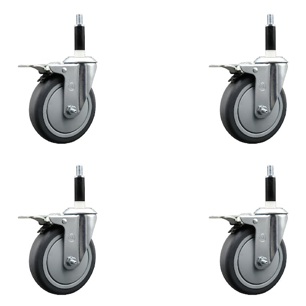 5'' Thermoplastic Rubber Swivel 7/8'' Expanding Stem Caster Set Total Lock Brake, 4PK