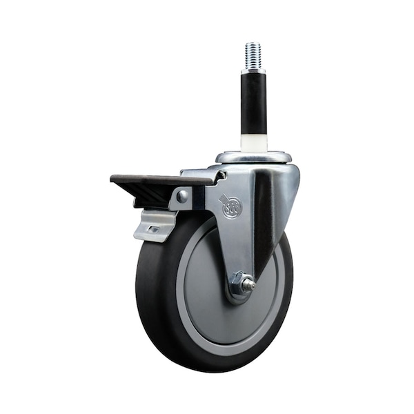 Listing is for one 1 Service Caster Series #20 7/8'' expanding stem swivel caster with a 5'' diameter by 1-1/4'' wide thermoplastic rubber wheel and a posi locking brake capable of supporting 300 lbs./caster. When searching for a reliable and durable solution to your caster needs, look no further than the Service Caster Series 20 expanding stem thermoplastic rubber wheel casters. The Series #20 features an innovative expanding stem that can easily adapt to the inside diameter of the opening, allowing for a secure fit in round or square tubes. Simply tighten the topmost knurled nut to compress the rubber for a snug fit. For added security, further compress the rubber with a wrench via the nut under the swivel raceway. Finely crafted with a bright zinc plated finish, heat-treated ball bearing raceway, and a thermoplastic rubber wheel, this versatile caster is ideal for work tables, shop projects, or any equipment with round or square tube legs. Service Caster is unsurpassed in quality, reliability, and excellent customer service. Count on us to move you forward.