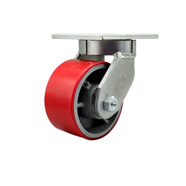Listing is for one 1 Service Caster Series #92 swivel caster with a 6'' diameter, 3'' wide red polyurethane tread on metal core wheel. Supports 2000 pounds lbs per caster. When searching for a reliable and durable solution for extra heavy duty projects, consider Service Caster's Series 92 top plate polyurethane on metal wheel casters. The Service Caster Series #92 is ideal for cranes, gantry, hoists, winches, material handling, carts and industrial equipment. The non-marking, non-marring polyurethane tread performs especially well on hard surfaces such as concrete, tile, and wood, while the metal core wheel stands up to heavier loads with a stable and secure roll. Featuring a Kingpinless hot forged ASTM1045 steel design that increases caster durability and integrity, the series 92 eliminates problems associated with kingpin failure due to severe shock loading. In addition, the Kingpinless design features 1/2'' diameter HRC45 steel ball bearings which absorb thrust and load in severe environments. Lastly, Service Caster's Series #92 top plate casters are finely crafted with zinc plating, grease fittings, and 4 position notches to accept 4-position locks. These highly versatile casters are ideal for a wide range of applications, such as dollies, platform trucks, warehouse carts and freight terminals. Even drywall carts, welding carts, and wall panel carts will be ready to roll on the Series 92, keeping you moving forward.Service Caster is unsurpassed in quality, reliability, and excellent customer service. Count on us to move you forward.