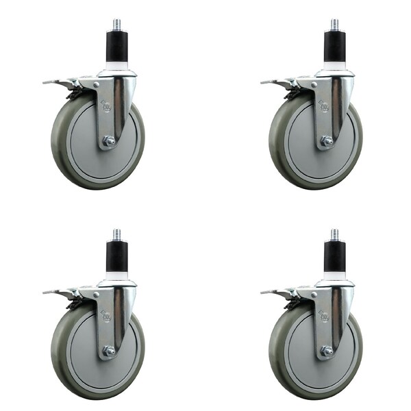 6'' Gray Poly Swivel 1-1/2'' Expanding Stem Caster Set Total Lock Brake, 4PK