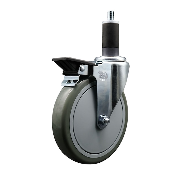 6'' Gray Poly Swivel 1-1/4'' Expanding Stem Caster with Brake