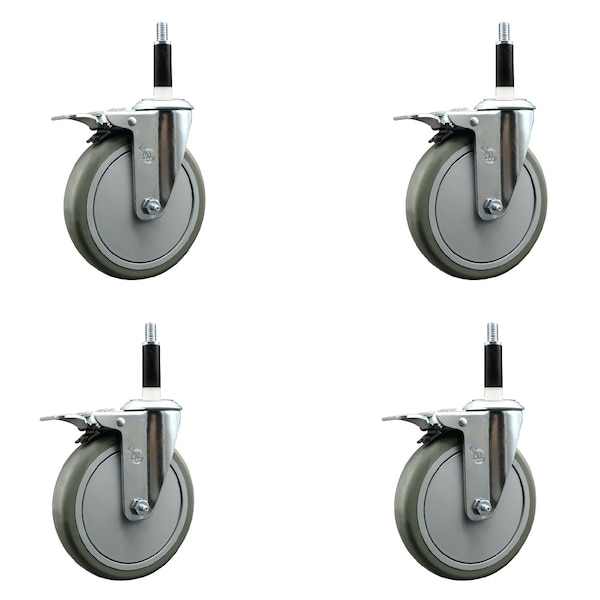 6'' Gray Poly Swivel 7/8'' Expanding Stem Caster Set Total Lock Brake, 4PK