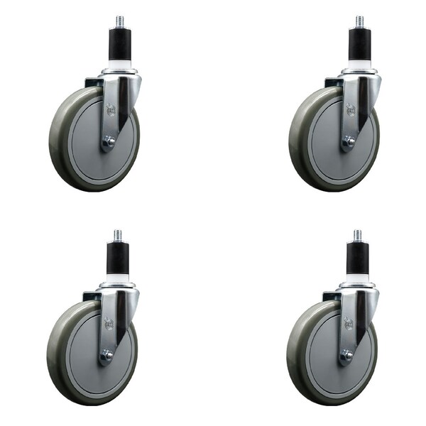 6'' Gray Poly Wheel Swivel 1-1/2'' Expanding Stem Caster Set, 4PK