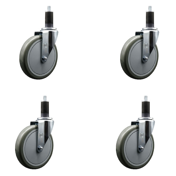 6'' Gray Poly Wheel Swivel 1-1/4'' Expanding Stem Caster Set, 4PK