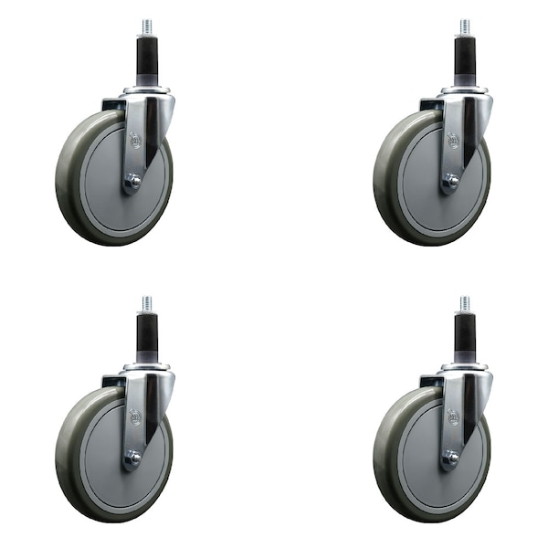 6'' Gray Poly Wheel Swivel 1-1/8'' Expanding Stem Caster Set, 4PK