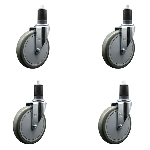 6'' Gray Poly Wheel Swivel 1-5/8'' Expanding Stem Caster Set, 4PK