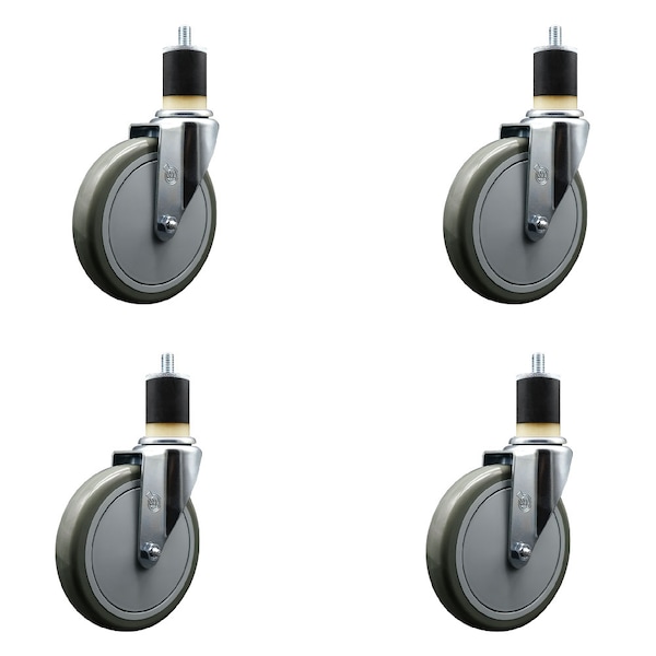 6'' Gray Poly Wheel Swivel 1-7/8'' Expanding Stem Caster Set, 4PK
