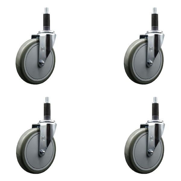 6'' Gray Poly Wheel Swivel 1'' Expanding Stem Caster Set, 4PK