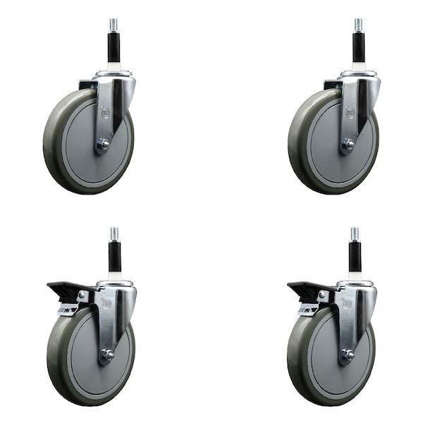 6'' Gray Poly Wheel Swivel 7/8'' Expanding Stem Caster Set 2 Brakes, 4PK