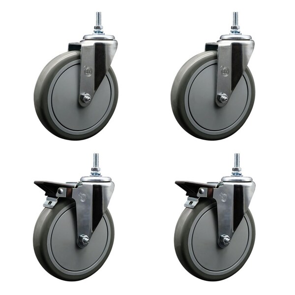 Listing is for a set of four 4 Service Caster Series 20 casters, two 2 swivel 12MM threaded stem with brake casters and two 2 swivel casters, with 6 diameter by 114 wide gray polyurethane wheels Supports a total weight of 1,400lbs 350lbsper caster When searching for a reliable and durable solution to your caster needs, consider Service Casters Series 20 threaded stem polyurethane casters The Service Caster Series 20 is ideal for light and medium duty material handling, carts, equipment, and shop projects The bolt hole can accept a bolt or a customized stem, allowing for any type of mounting requirementThe zinc plated finish provides durability under any condition, while the nonmarking, nonmarring polyurethane wheels perform especially well on hard surfaces such as concrete, tile, and wood All rolling on a finely crafted ball bearing design that will keep you moving forward