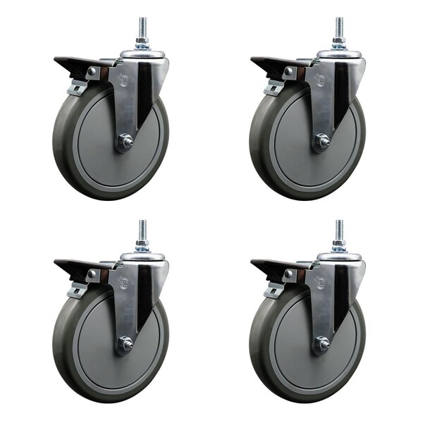 Listing is for a set of four 4 Service Caster Series 20 swivel casters, four 4 swivel 12MM threaded stem casters with posi lock brakes, 6 diameter by 114 wide gray polyurethane wheels Supports a total weight of 1,400lbs 350lbsper caster When searching for a reliable and durable solution to your caster needs, consider Service Casters Series 20 threaded stem polyurethane casters The Service Caster Series 20 is ideal for light and medium duty material handling, carts, equipment, and shop projects The bolt hole can accept a bolt or a customized stem, allowing for any type of mounting requirementThe zinc plated finish provides durability under any condition, while the nonmarking, nonmarring polyurethane wheels perform especially well on hard surfaces such as concrete, tile, and wood All rolling on a finely crafted ball bearing design that will keep you moving forward