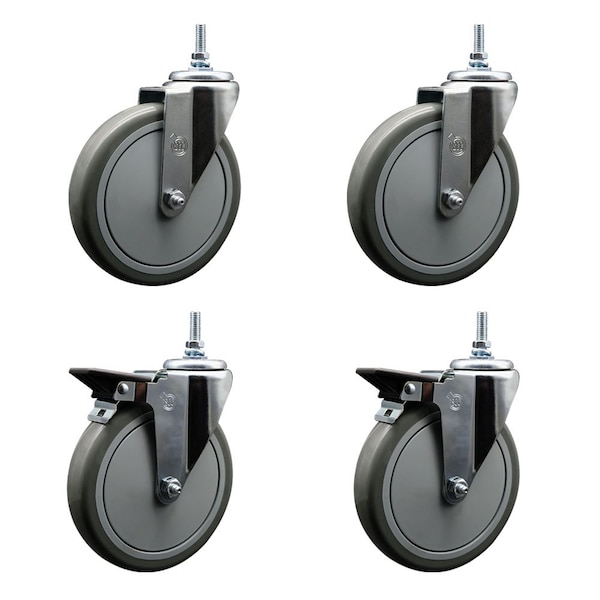 Listing is for a set of four 4 Service Caster Series 20 casters, two 2 swivel 38 threaded stem with brake casters and two 2 swivel casters, with 6 diameter by 114 wide gray polyurethane wheels Supports a total weight of 1,400lbs 350lbsper caster When searching for a reliable and durable solution to your caster needs, consider Service Casters Series 20 threaded stem polyurethane casters The Service Caster Series 20 is ideal for light and medium duty material handling, carts, equipment, and shop projects The bolt hole can accept a bolt or a customized stem, allowing for any type of mounting requirementThe zinc plated finish provides durability under any condition, while the nonmarking, nonmarring polyurethane wheels perform especially well on hard surfaces such as concrete, tile, and wood All rolling on a finely crafted ball bearing design that will keep you moving forward