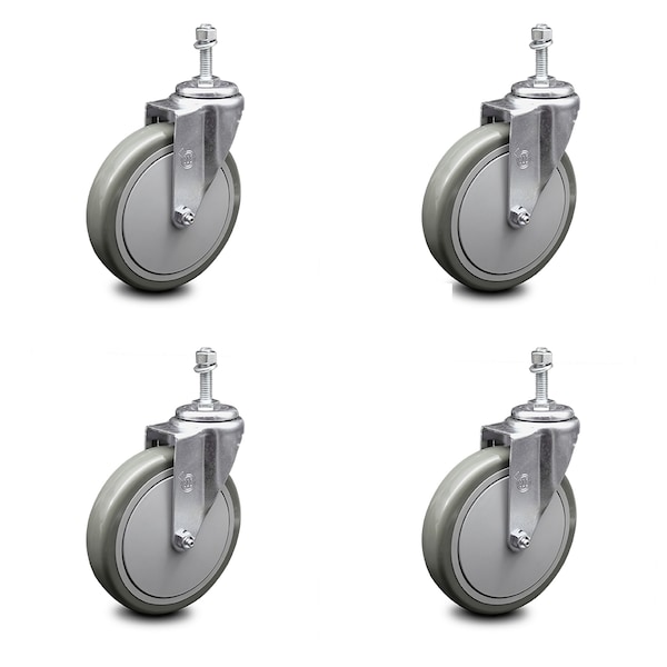 6 Inch Gray Polyurethane Wheel Swivel 10mm Threaded Stem Caster Set SCC