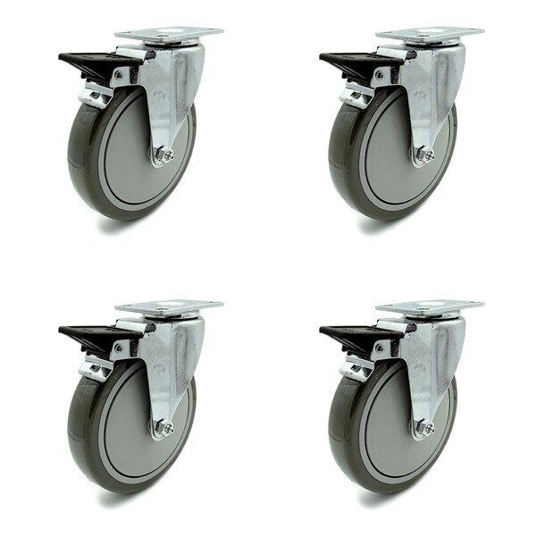 6 Inch Gray Polyurethane Wheel Swivel Top Plate Caster Set with Brake SCC