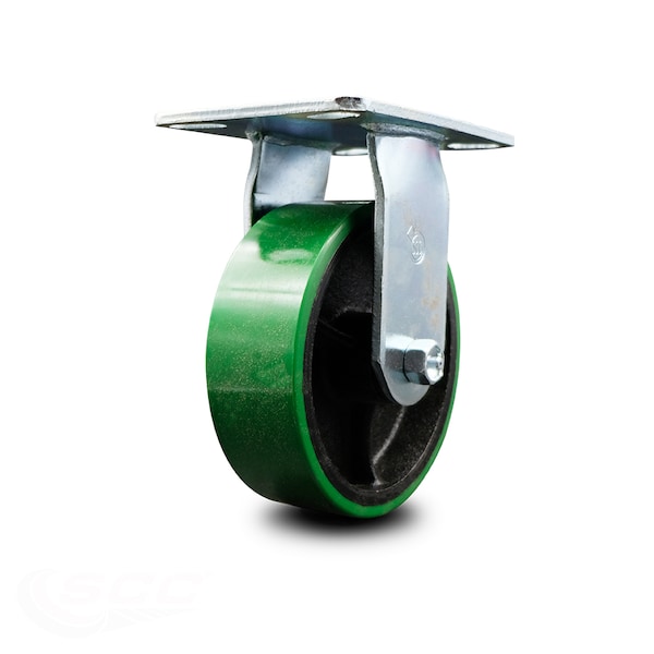 6 Inch Heavy Duty Green Poly on Cast Iron Rigid Caster with Roller Bearing SCC