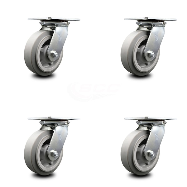 Listing is for a set of four (4) Service Caster Series #35 swivel casters with 6" diameter by 2" wide thermoplastic rubber flat tread wheels capable of supporting a total weight of 2,000 lbs. (500 lbs. per caster). When searching for a reliable and durable solution for medium and heavy duty projects, consider Service Caster’s Series 35 thermoplastic rubber flat tread on polyolefin core casters. The soft flat tread is made of thermoplastic rubber that is non-marking and non-marring, and on the polyolefin core provides a long lasting, high capacity wheel that is capable of easy rolling under heavy loads. Finely crafted with double ball bearing heat treated raceways, these versatile casters are ideal for a wide range of applications, such as dollies, platform trucks, warehouse carts and freight terminals. Or ensure a smooth and secure ride for food service carts, hotel housekeeping carts, and industrial and commercial equipment. Even drywall carts, welding carts, and wall panel carts will be ready to roll on the Series 35, keeping you moving forward.