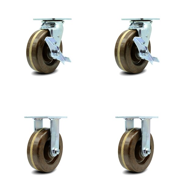 6 Inch High Temp Phenolic Caster Set with Roller Bearings 2 Brakes 2 Rigid SCC