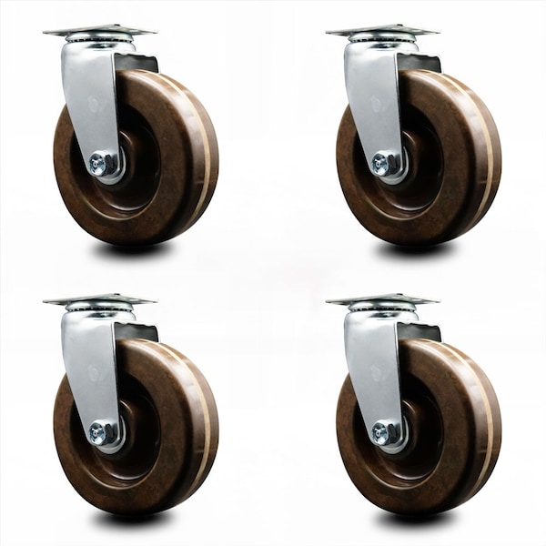 6 Inch High Temp Phenolic Wheel Swivel Caster Set with Roller Bearings SCC