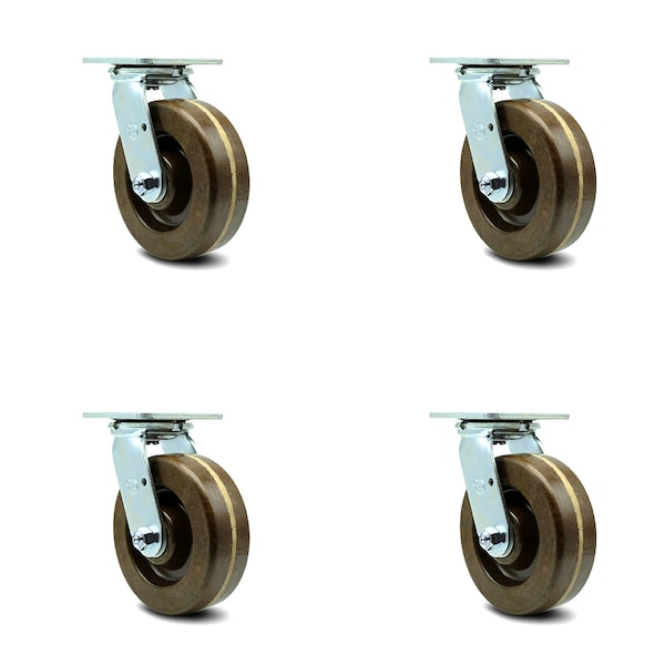 6 Inch High Temp Phenolic Wheel Swivel Caster Set with Roller Bearings SCC