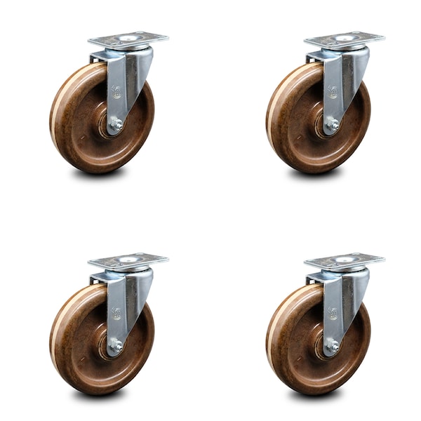 6 Inch High Temp Phenolic Wheel Swivel Top Plate Caster Set