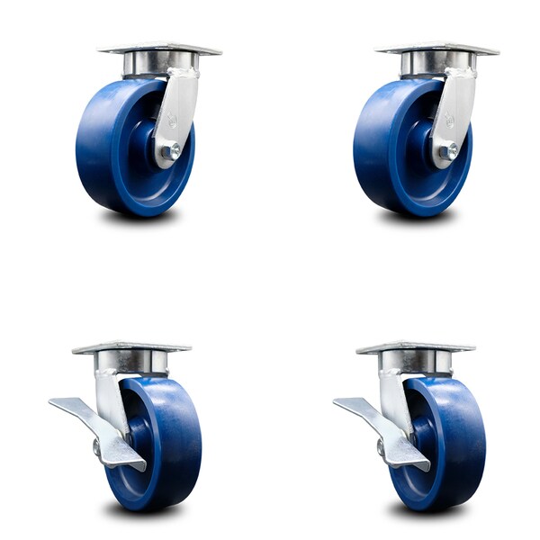 6 Inch Kingpinless Solid Poly Wheel Swivel Caster Set with 2 Brakes SCC