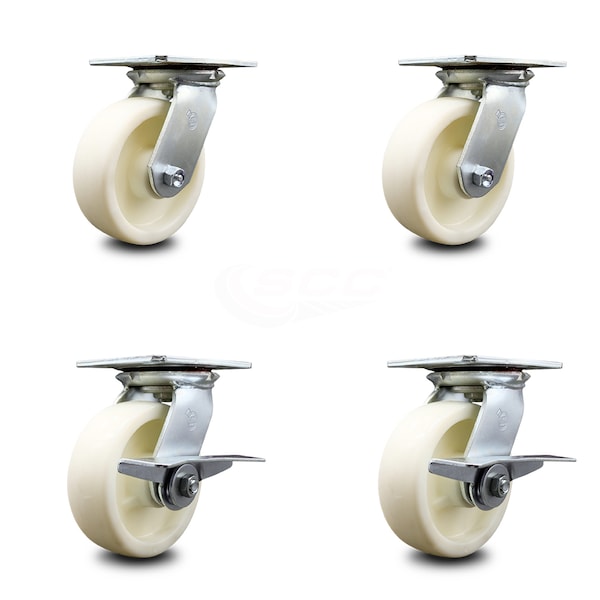 6 Inch Nylon Swivel Caster Set with Roller Bearings 2 Brakes