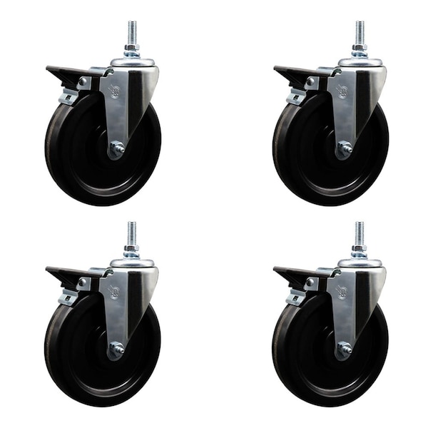 6 Inch Phenolic 10 MM Threaded Stem Caster Set with Brake