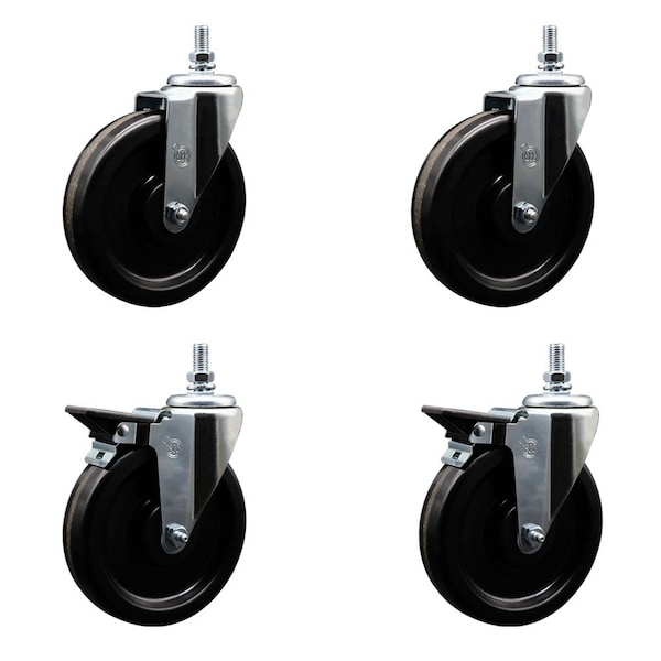 6 Inch Phenolic 12 Inch Threaded Stem Caster Set 2 Brakes SCC