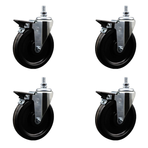 6 Inch Phenolic 12 Inch Threaded Stem Caster Set with Brake