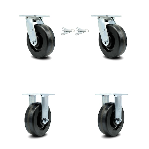 6 Inch Phenolic Caster Set with Ball Bearings 2 Swivel Lock 2 Rigid SCC