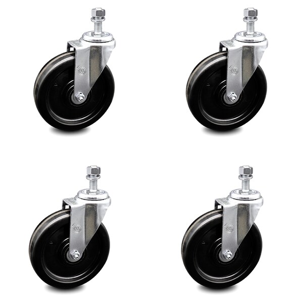 6 Inch Phenolic Wheel Swivel 1/2 Inch Threaded Stem Caster Set