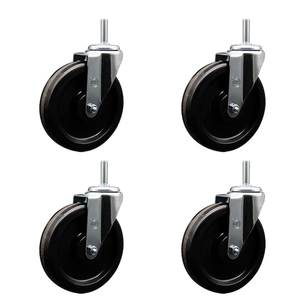 6 Inch Phenolic Wheel Swivel 34 Inch Threaded Stem Caster Set Service Caster
